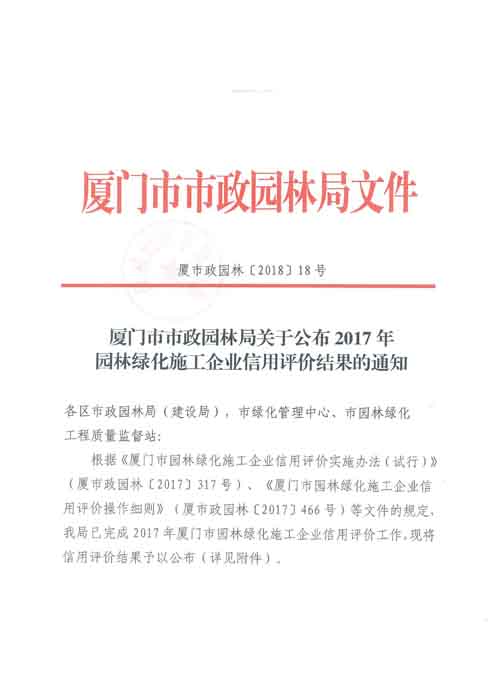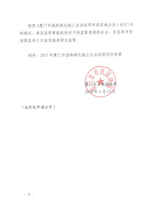 關于公布2017年園林綠化施工企業(yè)信用評價結果的通知-2